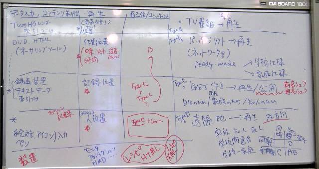 | TypeB | パッケージソフトを再生 | ネットワーク配信もあり | Happy Cooking, オーサリング支援,レシピXML, 人の識別(RFID),蛇口等コントローラ, 味センサ | 作業位置に表示 |