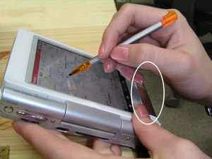 - 手のひらを使って文鎮のように紙を押さえる動作をメタファとして利用し、PDAや携帯などの表示コンテンツの編集操作とスクロール操作を直感的に切り替えるインタフェース